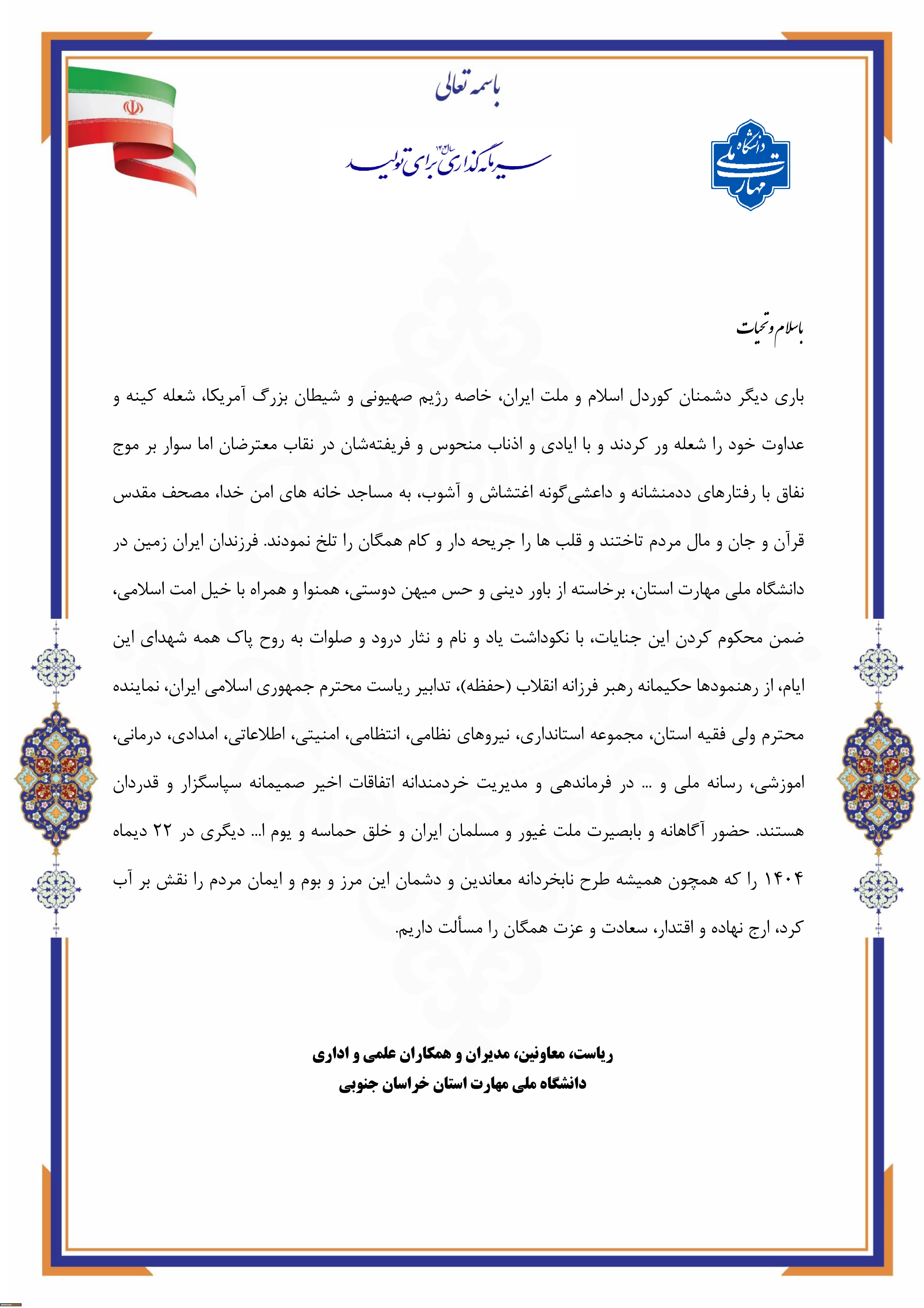 بیانیه دانشگاه ملی مهارت استان خراسان جنوبی 2